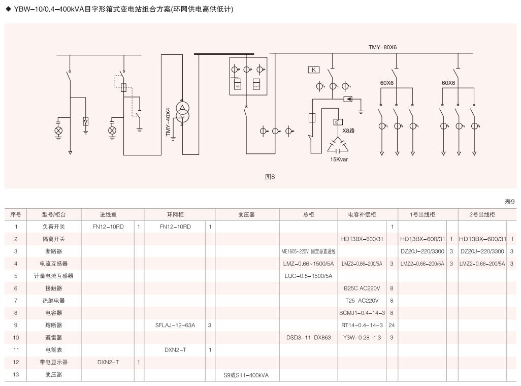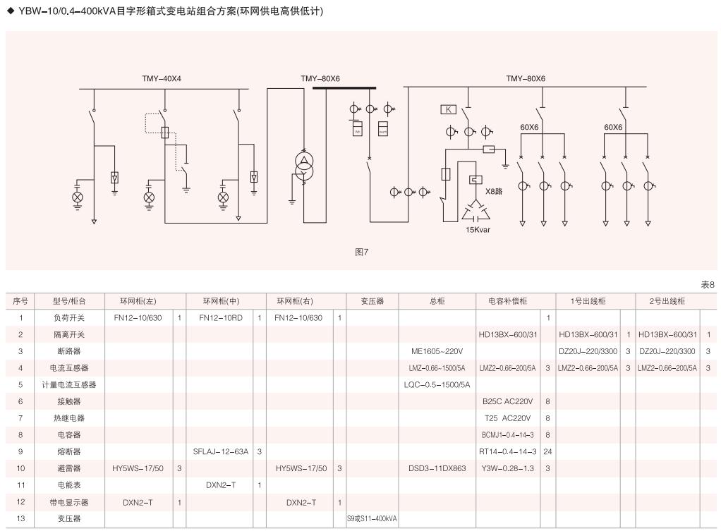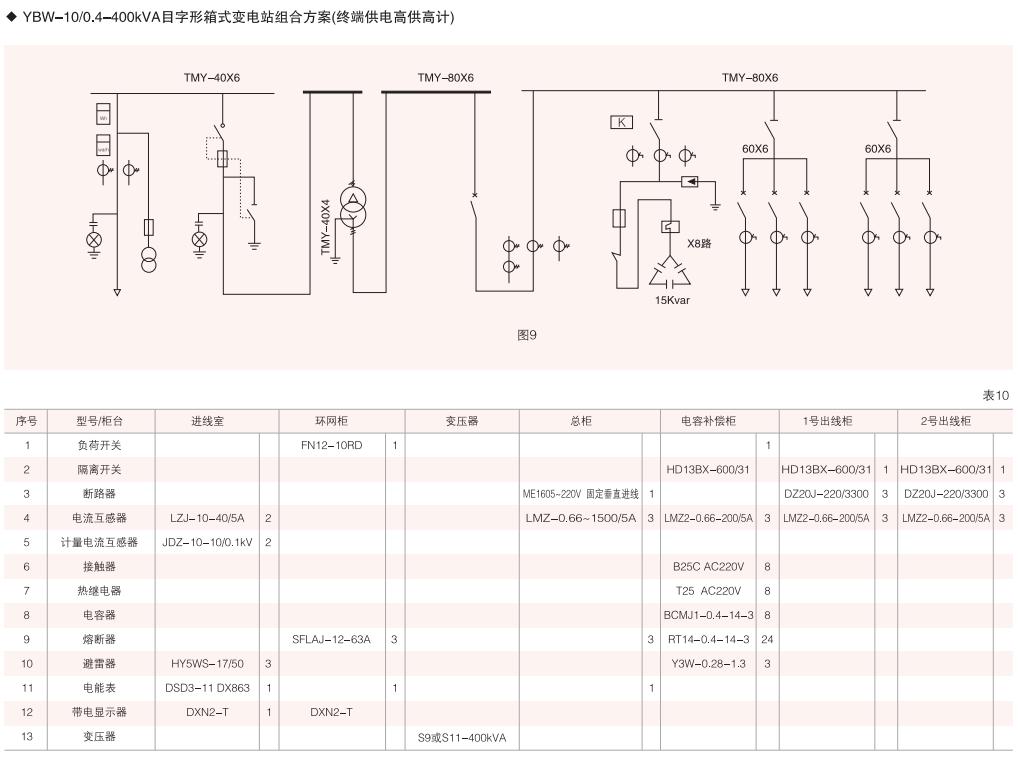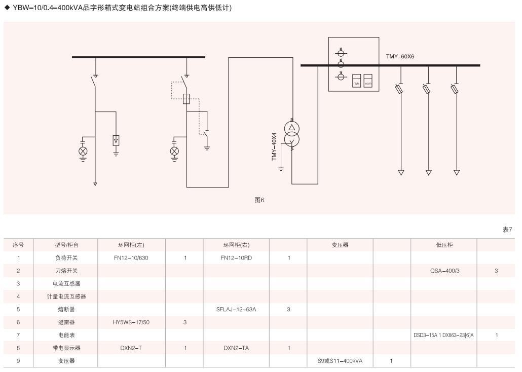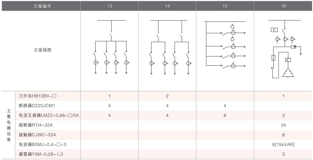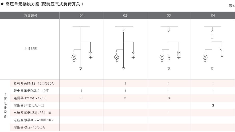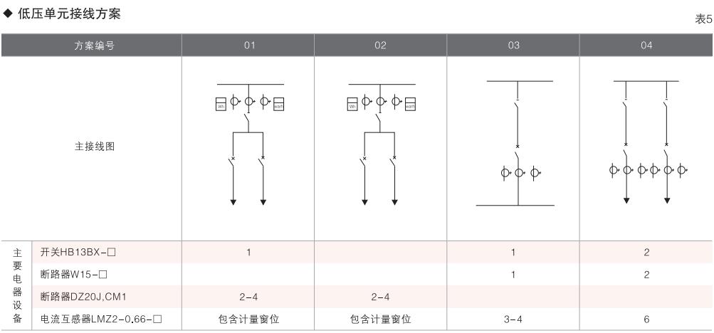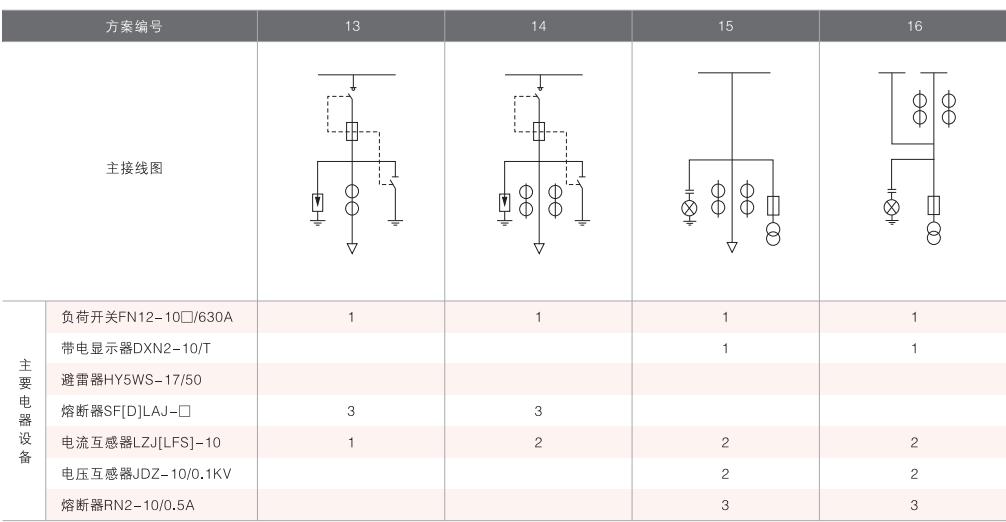 表6~列舉了一些典型組合接線方案,供用戶和設(shè)計(jì)單位參考。(以配裝壓氣式負(fù)荷開(kāi)關(guān)為例)