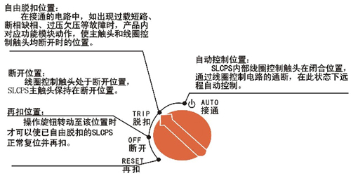 SLCPS操作機構的工作狀態(tài)在主體面板上的符號及指示器位置含義如下圖 所示。