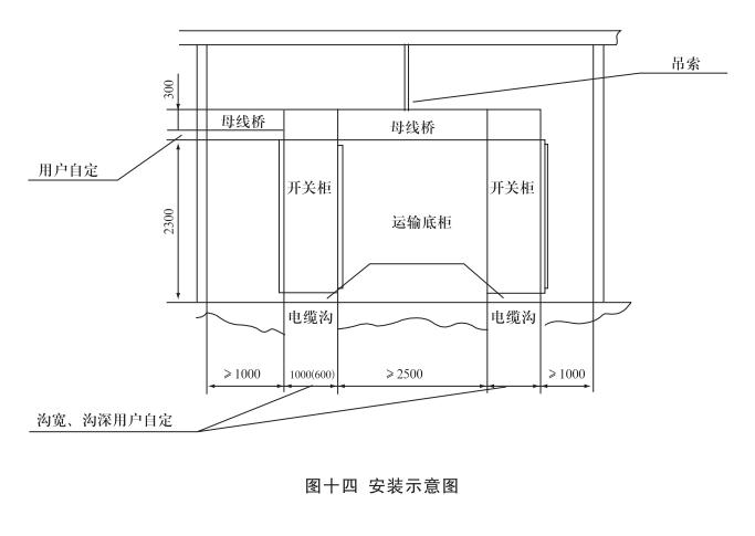 安裝:開關柜就位。找準位置,按圖十一所示進行焊接,焊接節(jié)柜和焊長由用戶確定,產(chǎn)品安裝與配電室的相對位置參考圖十二,其中吊索是否安裝由用戶確定,制造商提供的原則是:當母線橋的長度大于3米時應考慮安裝吊索。但是,當母線橋的電流大于或等于2500A時,其長度為2.5米時也應安裝吊索。