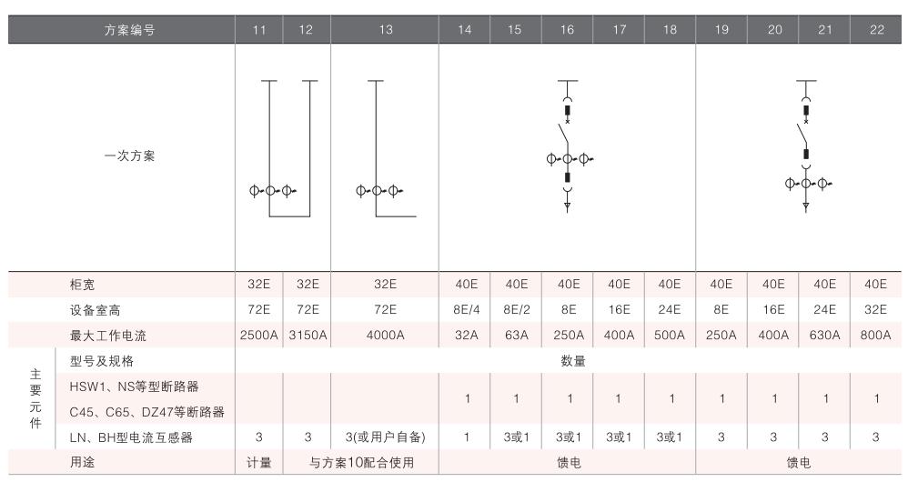 g)抽屜進出線根據(jù)回路電流大小,采用不同規(guī)格的主電路隔離插件(見表3),