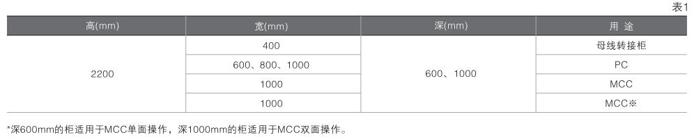 柜體外形尺寸(見表1)
